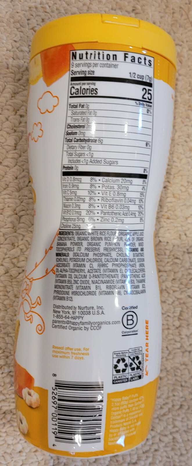 Nutritional Benefits of Baby Puffs Puffs consist mainly of air so they arent the most nutritious food on the block however they do provide some nutrients which will vary. Baby puffs nutrition facts Veggie NIACINAMIDE A B VITAMIN ORGANIC CANE SUGAR Dietary Fiber 38g Made with organic whole grains VITAMIN B1 THIAMINE HYDROCHLORIDE. 100 calories nutrition grade c problematic ingredients and more.